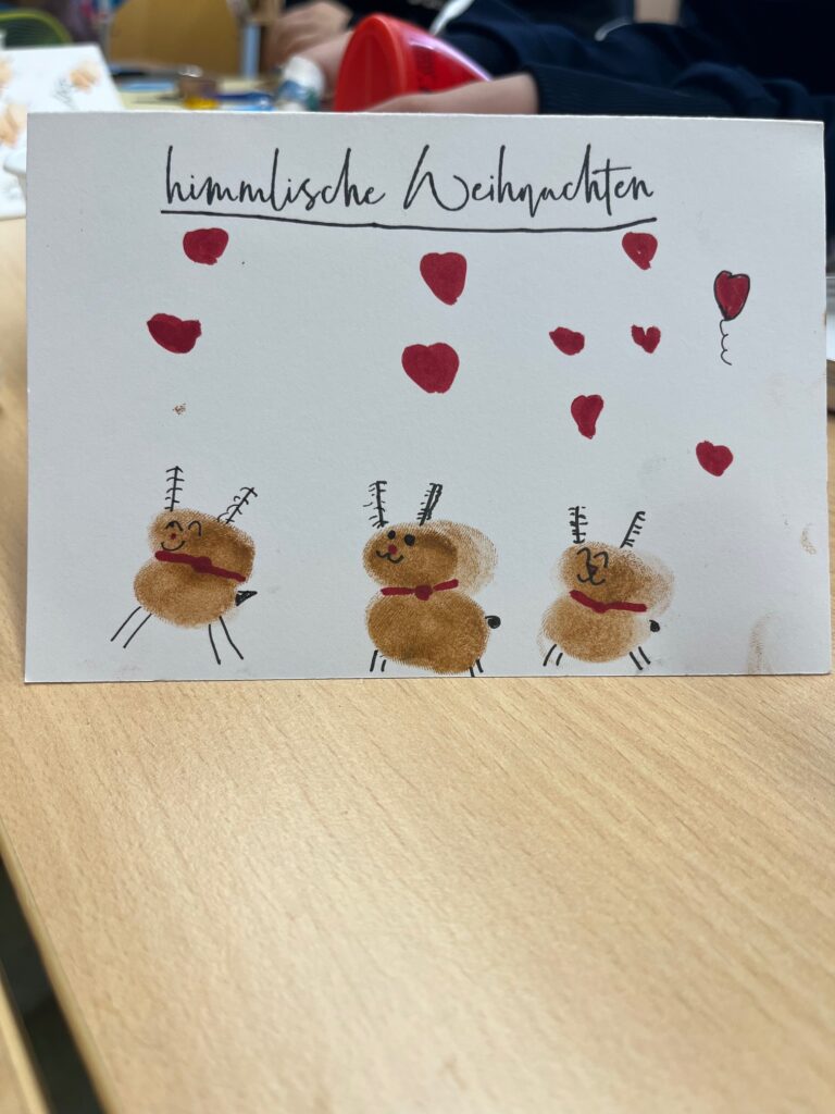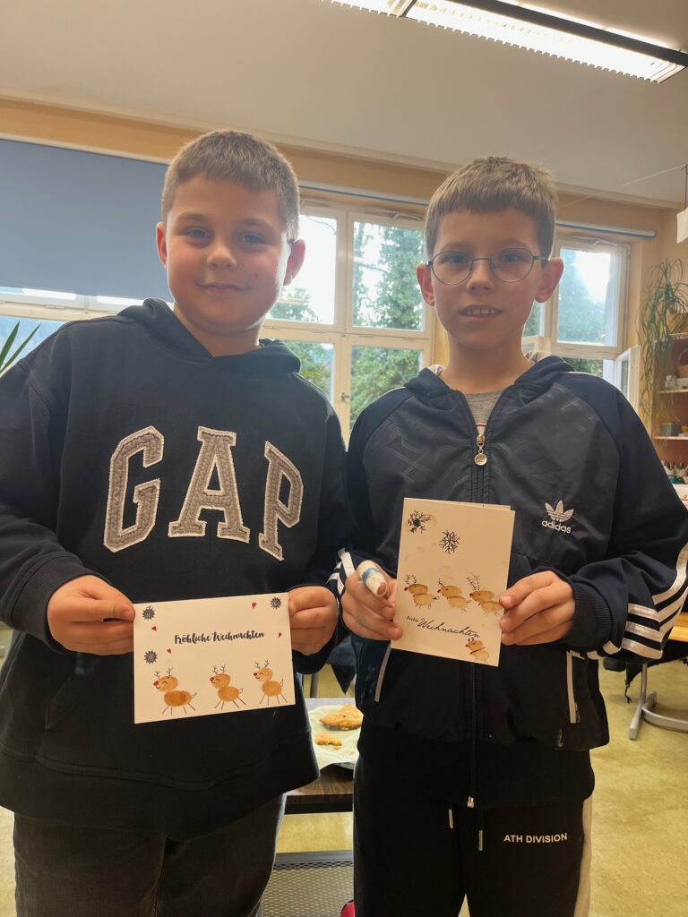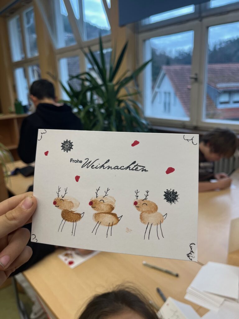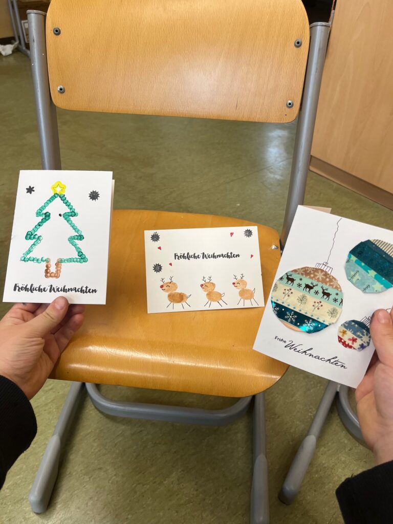 Mit vielen lustigen Ideen und noch mehr guter Laune gestalteten die Kinder ihre eigenen Weihnachtskarten. Manche waren so fantasievoll, dass selbst der Weihnachtsmann zweimal hingeschaut hätte.