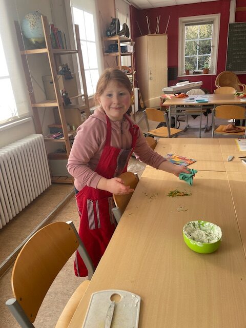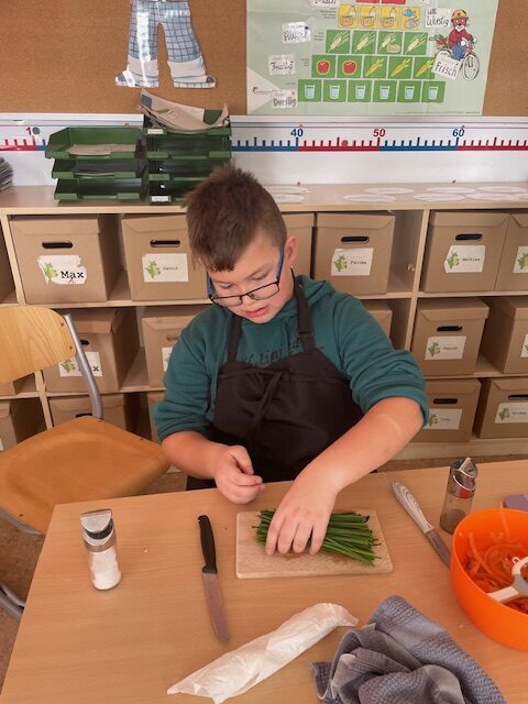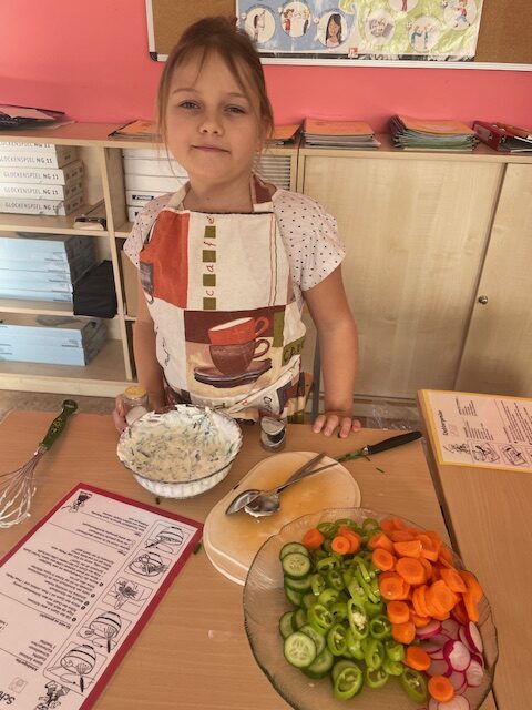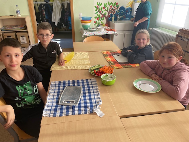 Dazu wurde heute gemeinsam Knabbergemüse mit Dip gemacht.