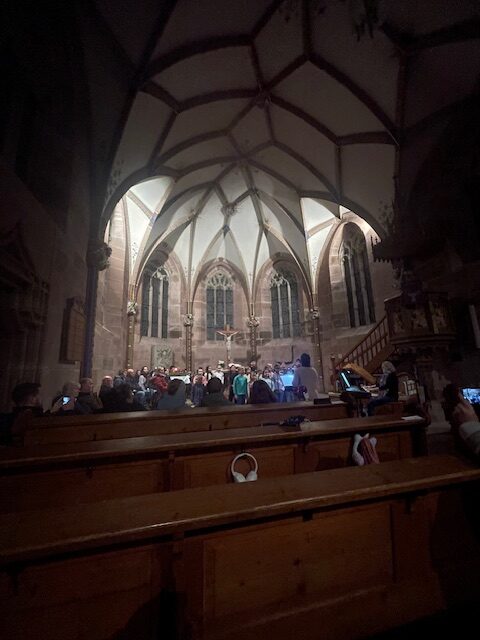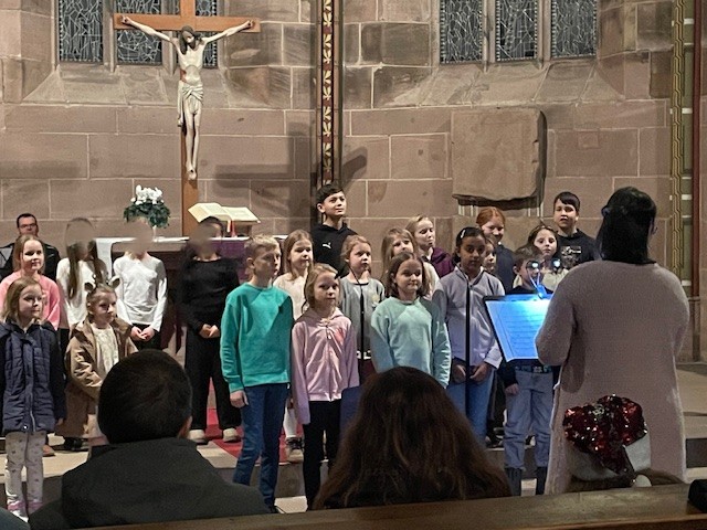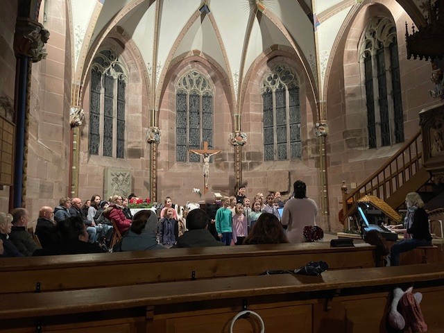 Neu war in diesem Jahr auch die Eröffnung in der Marienkapelle des Klosters. Umrahmt von adventlicher Musik der Stadtkapelle Calw sowie einigen Liedern zum Advent, die vom Chor der Grundschule Hirsau vorgetragen wurden, eröffnete Ortsvorsteherin Jacqueline Jakob sowie der neue Pfarrer der evangelischen Kirchengemeinde Hirsau, Georg Schwarz, den Markt.