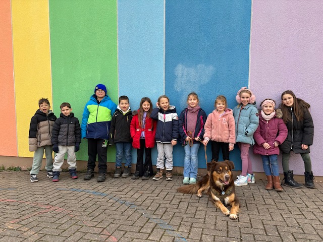 Die Haustier-AG mit Frau Oberdorfer, unterstützt durch Lupino.